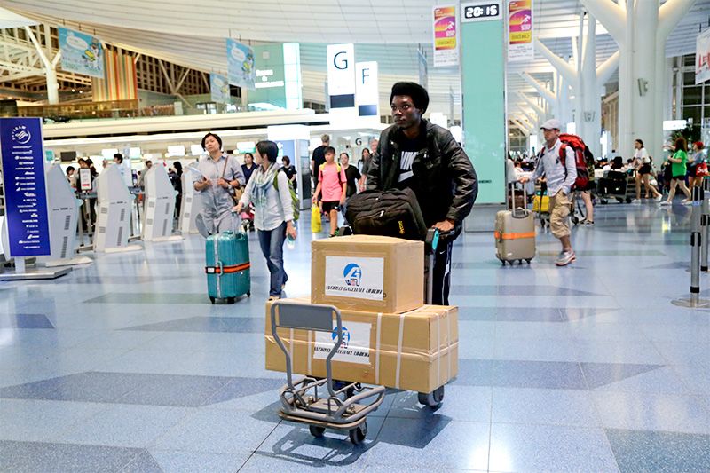 世界ゲートボール連合から新たに寄贈されたゲートボール用具やルールブックが詰まった荷物とともに帰国の途に就いた
