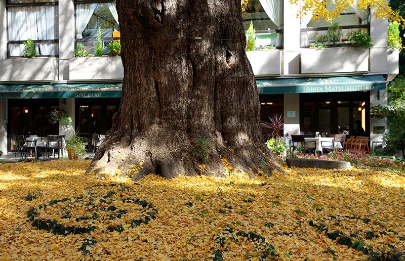 かつて日比谷交差点にあったこのイチョウ、1901(明治34)年頃、道路拡張のために伐採される運命だったのだが、日比谷公園の生みの親でもある植物学者の本多静六氏が「私の首を賭けてでも移植させる」との信念から移植を断行。現在の場所まで約450メートルほど移動させ、見事移植に成功した経緯が語り継がれているのだ。一度聞いたら忘れられないインパクトのある名前も、ここから来ている。