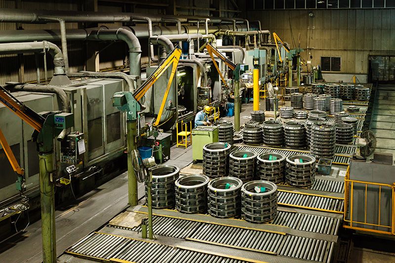 日之出水道機器栃木工場。マンホール蓋以外にも、さまざまな上下水道関連機器の製造と開発を行う。