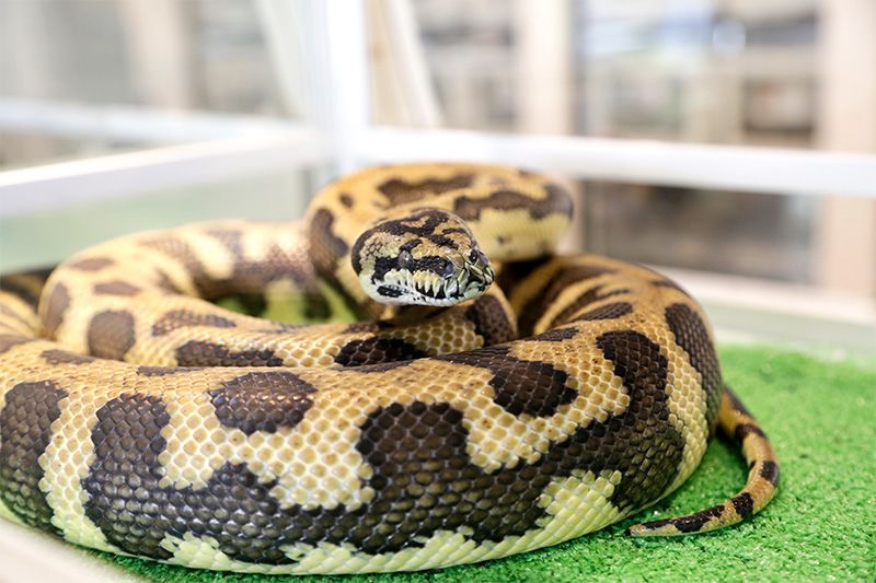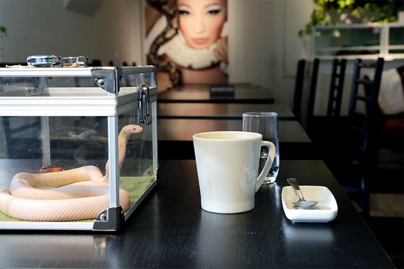蛇を見ながらお茶を飲むというのがコンセプト。一見ミスマッチに思えるが、匂いもしないし、間近で見る蛇に不気味さなんてない