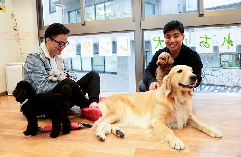 来店5回目の花里さん(左)に連れてきてもらったという情野さん。実家では犬を飼っていたが、今住んでいる部屋では飼えないこともあり、久々の犬との触れ合いは楽しそう