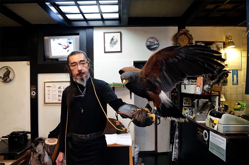 店主の佐々木薫さんは50年近くのキャリアを持つ鷹匠。「猛禽類が好きな人や猛禽類を飼ってみたいと思っている人は、ぜひ一度来てみてください」