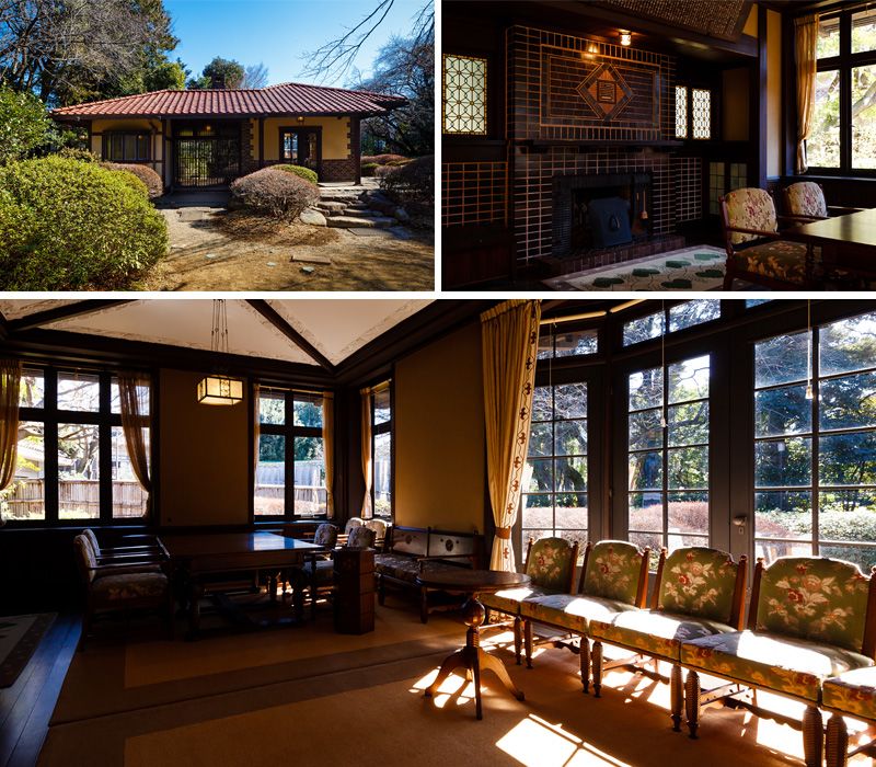 国際交流に積極的だった渋沢は、曖依村荘に多くの外国要人を招いた。蒋介石も訪れた青淵文庫のテラスと内観
