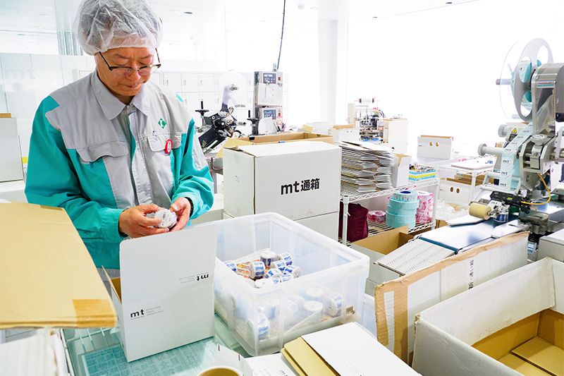 今年で6回目を迎える「mt factory tour」では、2週間の期間中の来場者は約1万2000人。事前申し込みが必要で、抽選倍率は約3倍だ。テープの巻き取り・切断・包装までの工場見学、過去に発売された約3000アイテムもの「mt」製品展示、この期間だけの限定テープ発売など、特典多数の “イベント詣” はファンにとっては「聖地巡礼」の感覚なのだろう。