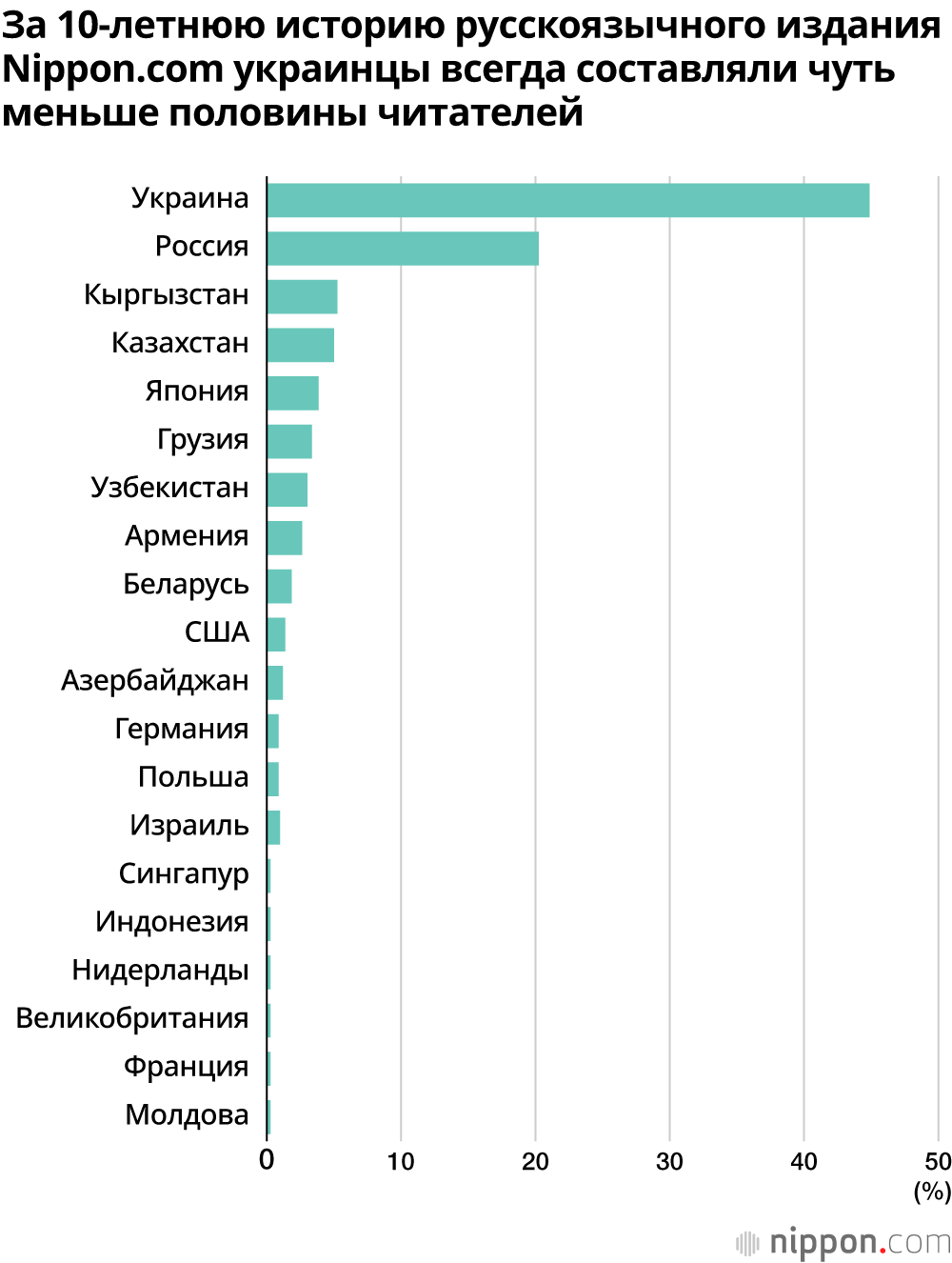 На протяжении этих 10 лет среди всех стран и регионов, где используется русский язык, именно из Украины у нас было наибольшее количество читателей. Чтобы выразить благодарность нашим украинским читателям за поддержку и отметить 10-летие русскоязычной версии, мы проводим акцию «Nippon.com: спасибо, Украина!».
