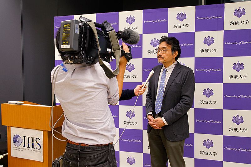 Профессор Янагисава Масаси даёт телевизионное интервью о результатах исследования (фотография предоставлена WPI-IIIS)