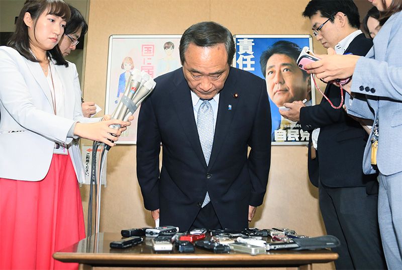 Ониси приносит извинения за высказывание о пациентах с онкологическими заболеваниями в главном офисе ЛДП в Токио (© Jiji)
