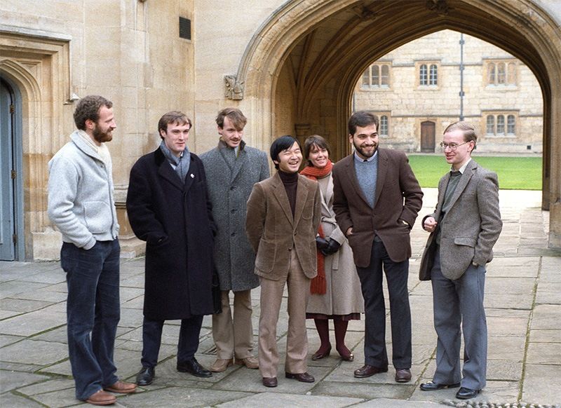 Наследный принц Нарухито общается со своими друзьями-студентами во время прогулки по Оксфордскому университету в декабре 1983 года (© Jiji)