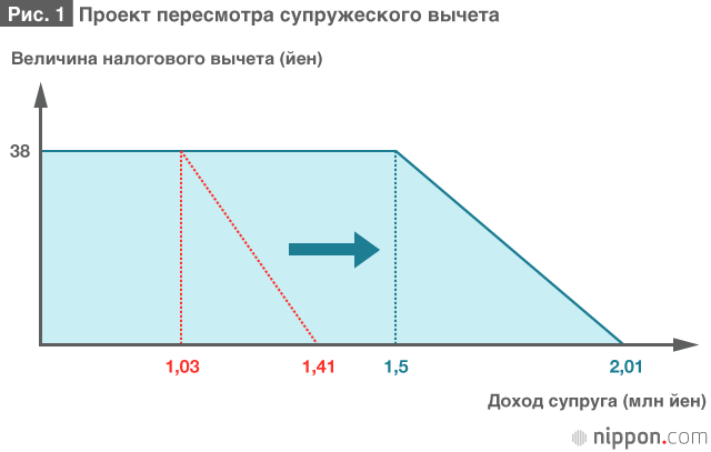 Супружеский вычет позволяет главе домохозяйства воспользоваться налоговой льготой в виде вычета из налогооблагаемого дохода величиной 380 тыс. йен в случае, если жена – домохозяйка либо если годовой доход жены (или мужа) главы домохозяйства не превышает 1 млн 30 тыс. йен. Но сегодня, когда число домохозяйств, где работают оба супруга, превысило число домохозяйств, где жена занимается исключительно домашними делами, такая система налогообложения вызывает сильную критику, поскольку она предоставляет преимущественные условия домохозяйствам, где жена занимается домашними делами. Тем самым система налогообложения препятствует повышению роли женщин в обществе. К тому же критики указывают на то, что из-за такого режима налогообложения возникает так называемый «барьер 1 млн 30 тыс. йен» – ситуация, когда частично занятые работники вынуждены ограничивать продолжительность своей работы с тем, чтобы их заработок не превысил этой суммы.
