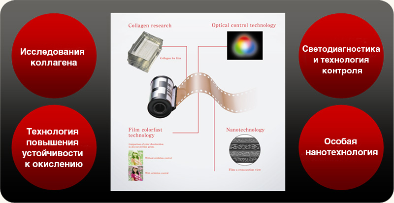 Четыре основных технологии производства фотопленки, использованные при разработке Astralift, – это исследования свойств коллагена, анализ и управление светом, антиоксидация и оригинальные нанотехнологии (фотография любезно предоставлена Fujifilm).