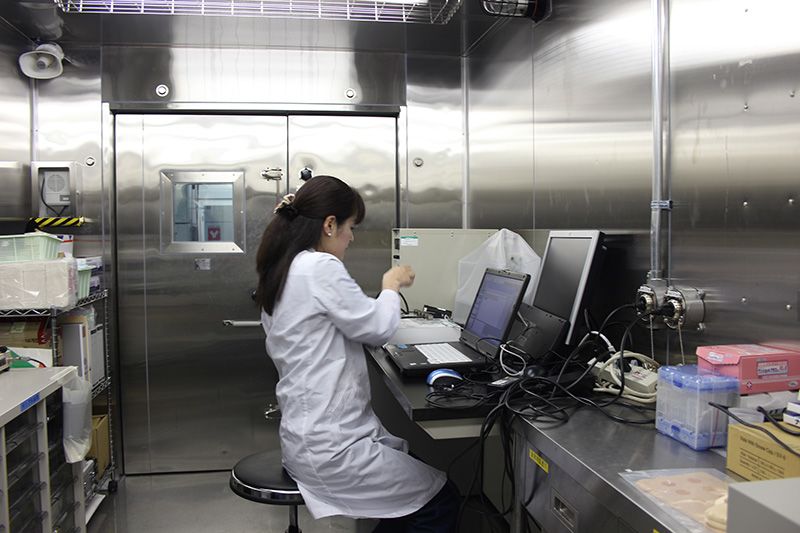 Помещение, где измеряется состояние кожи при постоянной температуре 22°C и влажности 50%. Эластичность, а также степень увлажненности и жирности кожи измеряются после того, как человек проведет в этой комнате около 20 минут