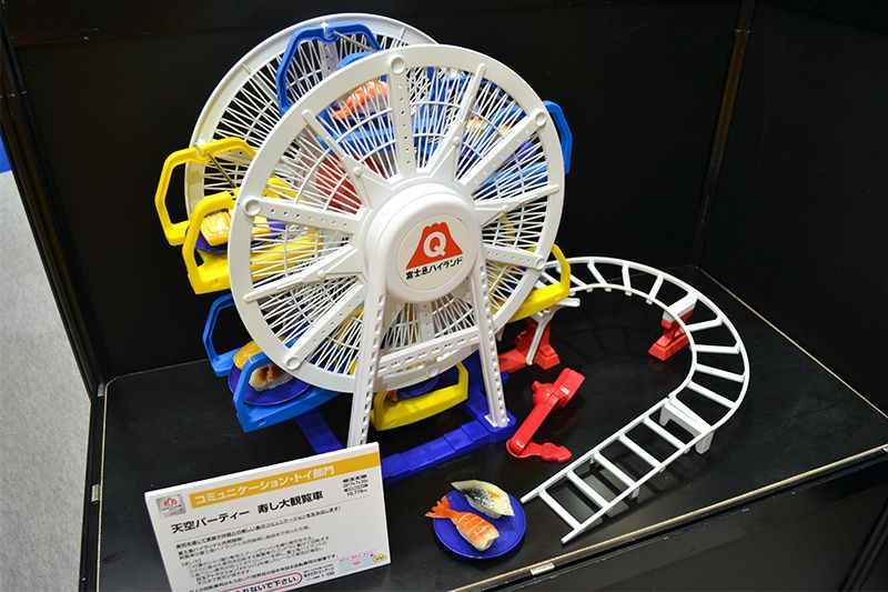 «Тэнку пати суси дайканранся» (Вечеринка в небе – колесо обозрения суси) предлагает суси не на конвейерной ленте, как в конвейерных ресторанах, а на колесе обозрения. Игрушка сделана «Такара Томи» совместно с парком развлечений Fuji-Q Highland