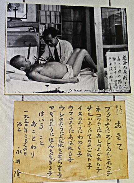 В первые дни после взрыва доктор Нагаи, несмотря на собственное тяжелое состояние, по мере сил помогал пострадавшим и раненым. На третий день он собрал и захоронил останки жены. В течение следующих 58 дней, начиная с 12 августа 1945 года, он, будучи командиром одиннадцатого врачебно-санитарного отряда, возглавлял созданный его же отрядом пункт неотложной помощи в Нагасаки, в районе Коямамати, оказывая медицинскую помощь жертвам бомбардировки. За это время один раз он находился в критическом состоянии на грани жизни и смерти, но чудесным образом выжил и восстановился.