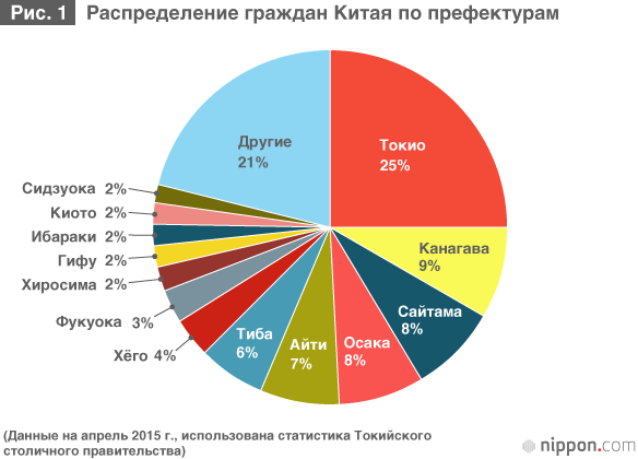 Традиционно районом обитания китайцев считали Кансай, однако статистика свидетельствует, что по числу выходцев из Китая префектура Осака (51 121 чел.) уступает Канагаве (55 942) и Сайтаме (52 495). Результаты поиска ресторанов китайской кухни в Токио ошеломляют – 287 точек на Икэбукуро, 201 в Рёгоку и Кинситё, 183 на Сибуя.