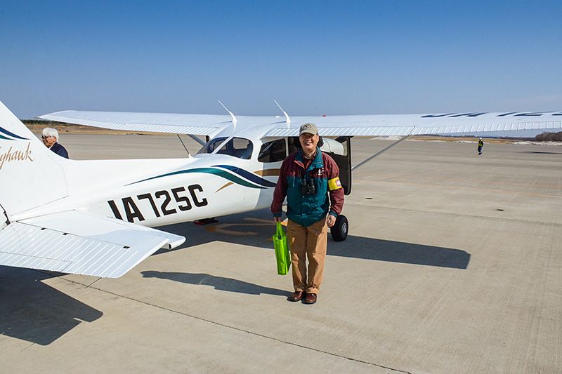 Возле легкомоторного самолёта перед вылетом на изучение мест гнездовья (фото Момосэ Куникадзу)
