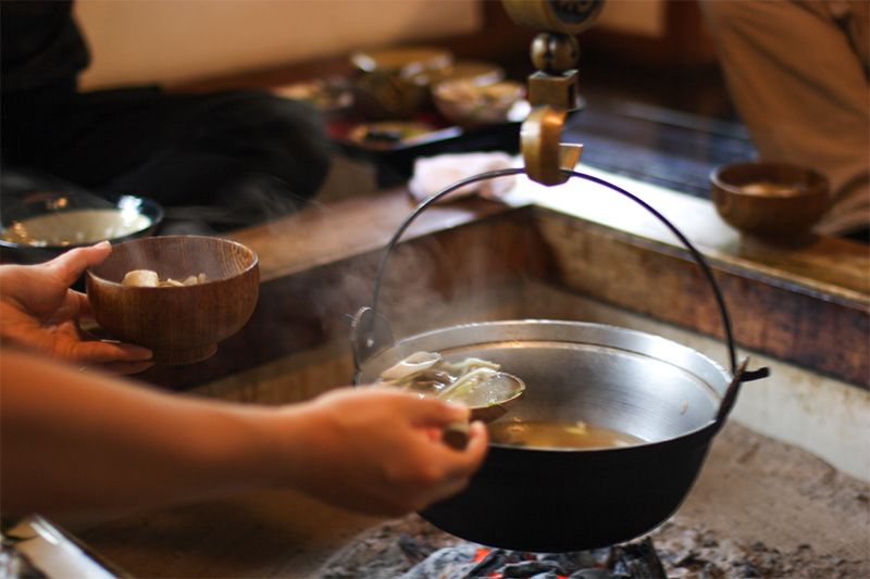 В некоторых старых деревенских домах в японской глубинке до сих пор сохранились такие предметы традиционного японского быта, как гоэмон-буро (разновидность японской ванны-фуро, железный чан с водой, подогреваемый снизу открытым огнем) и ирори (встроенный в деревянный пол открытый очаг, который топится углем и служит как для приготовления пищи, так и для обогрева).