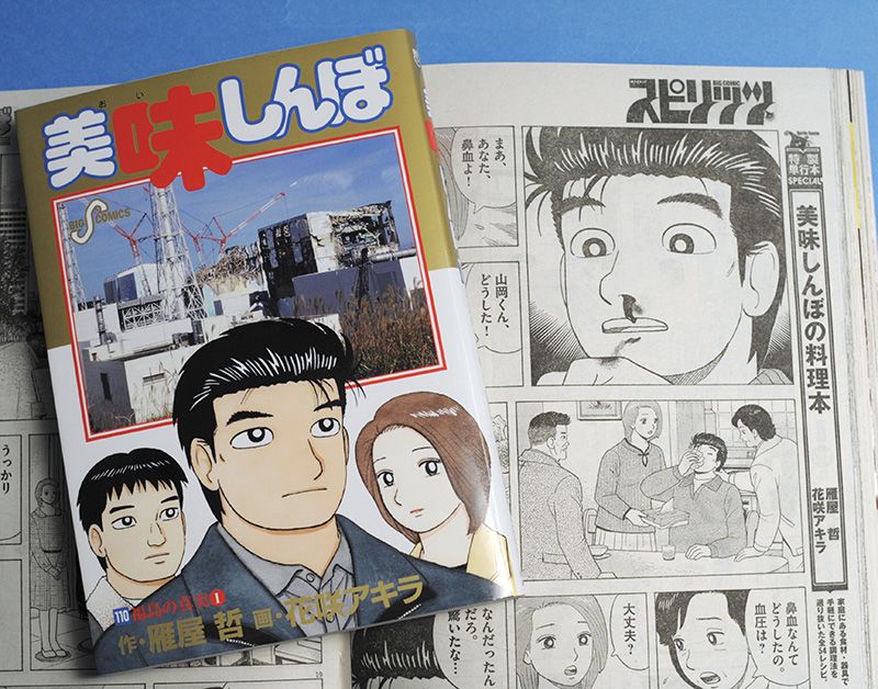 Издание популярной серии комиксов-манга «Оисимбо» закончилось скандалом по поводу содержания последнего выпуска, куда вошла история, сюжет которой связан с ядерной аварией в префектуре Фукусима. Администрация префектуры заявила официальный протест по поводу сюжета, по которому у главного персонажа началось кровотечение из носа после посещения АЭС «Фукусима-1». Кроме того, критике подверглись содержащиеся в комиксе реплики бывшего мэра г. Футаба в префектуре Фукусима Идогавы Кацутака о том, что «у многих в Фукусиме наблюдаются такие же симптомы» и о том, что «носовое кровотечение вызвано радиацией».