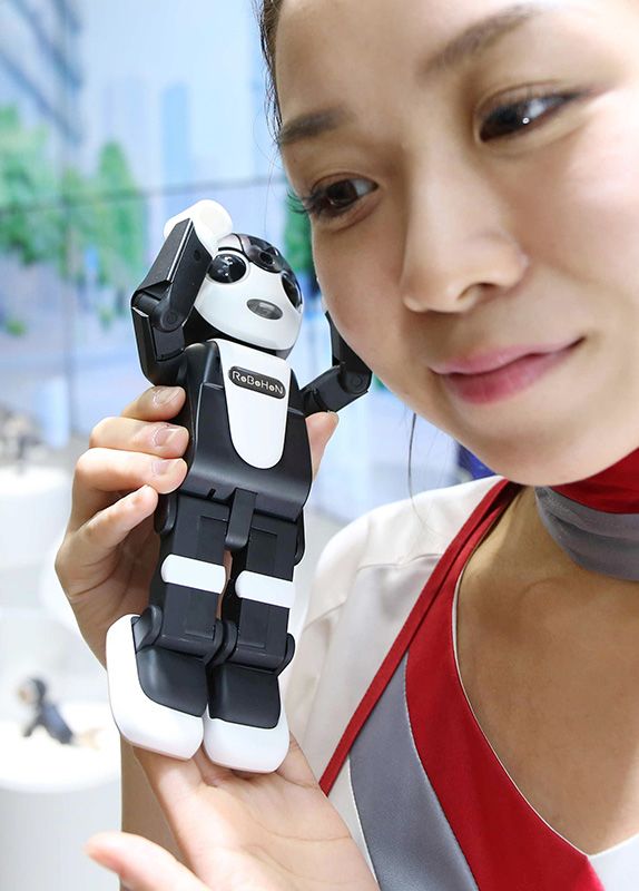 Фото: Представленный корпорацией Sharp робот-смартфон RoBoHoN, 6 октября 2015 г., город Тиба, район Михама, выставочный комплекс «Макухари Мэссэ» (фотография предоставлена Jiji Press)