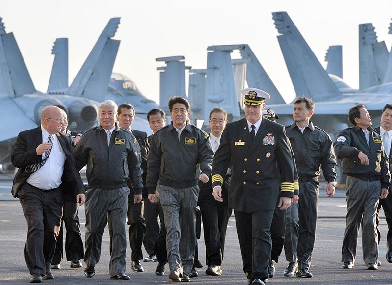 Премьер-министр Японии Абэ Синдзо принял участие в смотре флота Морских сил самообороны в заливе Сагами у побережья префектуры Канагава. После этого на вертолёте Морских сил самообороны он прибыл на атомный авианосец ВМС США «Рональд Рейган» и ознакомился с внутренним устройством этого корабля. По данным Министерства обороны Японии, действующий премьер-министр страны посетил американский авианосец впервые.