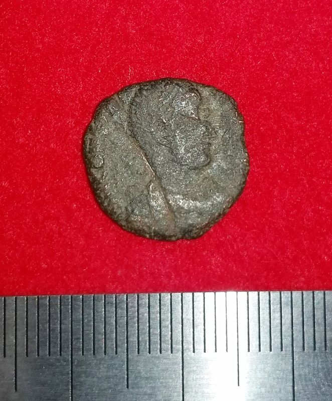 Монета Римской империи из руин замка Кацурэн, 26 сентября, преф. Окинава, мэрия г. Урума (фотография предоставлена Jiji Press)