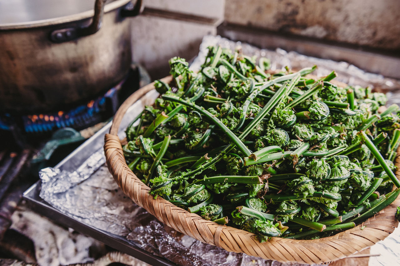 Типичная еда в «Дэвая» включает более 20 сортов дикорастущих сезонных овощей и трав