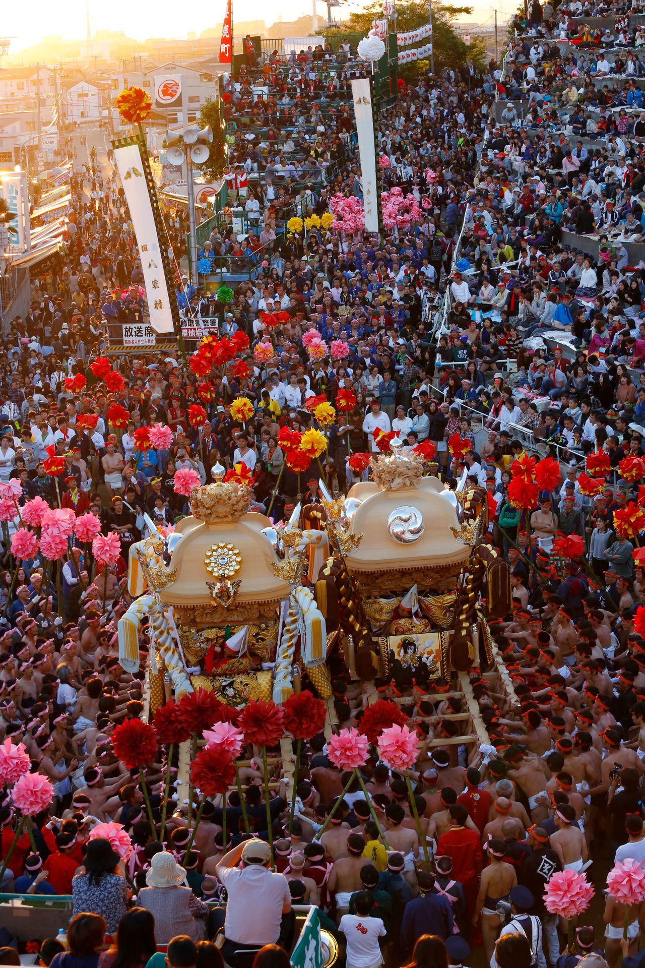 Главная часть праздника проходит на второй день, когда платформы проносят перед тысячами зрителей по пути к предгорьям Отабиямы, расположенным почти в двух километрах к западу от святилища.