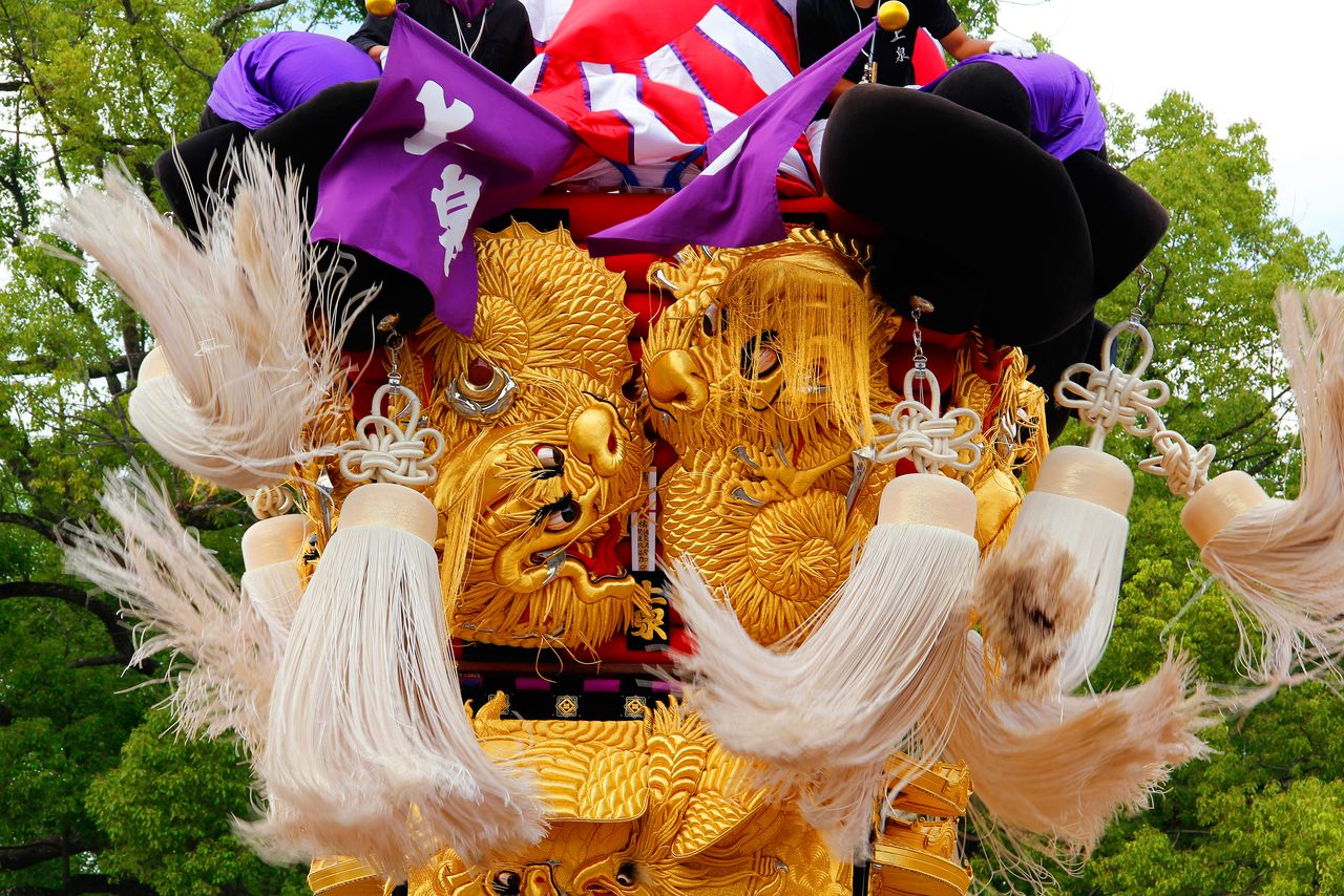 В празднике принимают участие более 50 платформ с барабанами, каждая из которых украшена занавесями с изысканной вышивкой, огромными кистями, и на них установлены мягкие подставки для барабанов. Главной отличительной чертой является объёмная вышивка, изображающая хмурых драконов. Занавески созданы искусными вышивальщицами с использованием настоящих золотых нитей, и каждая стоит до 10 миллионов йен.