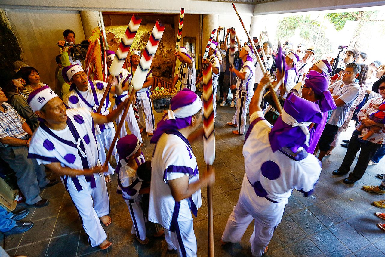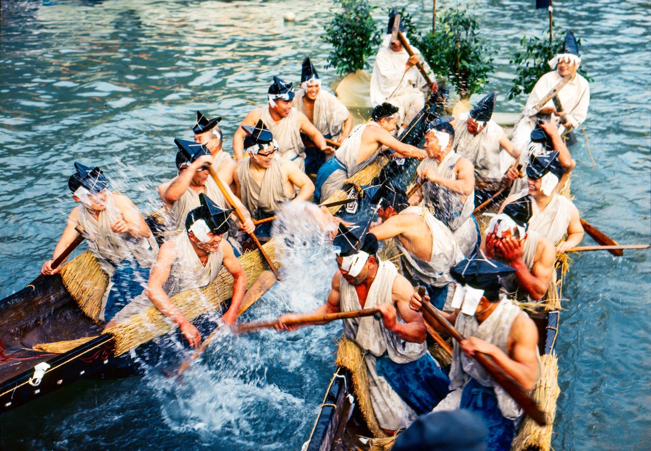 Эти гонки требуют от экипажей слаженной работы; даже один гребец может значительно замедлить движение лодки. Опытные гребцы передают свои навыки новым членам команды, и все они усердно тренируются, пока не смогут двигаться слаженно, как единое целое. Эти состязания, имеющие религиозный аспект, также помогают укрепить единство между прихожанами святилища. Здесь мы приводим три прекрасных примера обрядов, которые также подчеркивают чувство местной гордости.