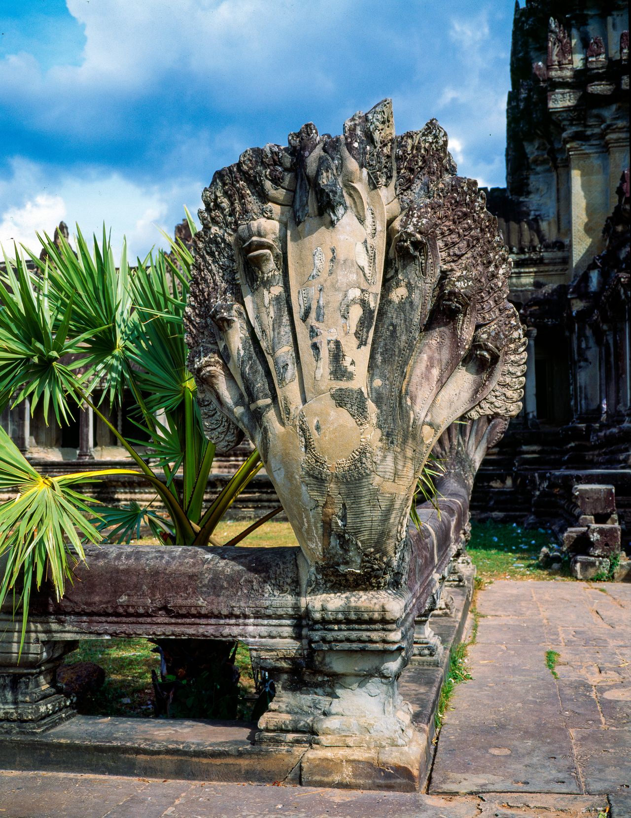 Статуя многоголовой змеи-нага среди руин Ангкор-Вата