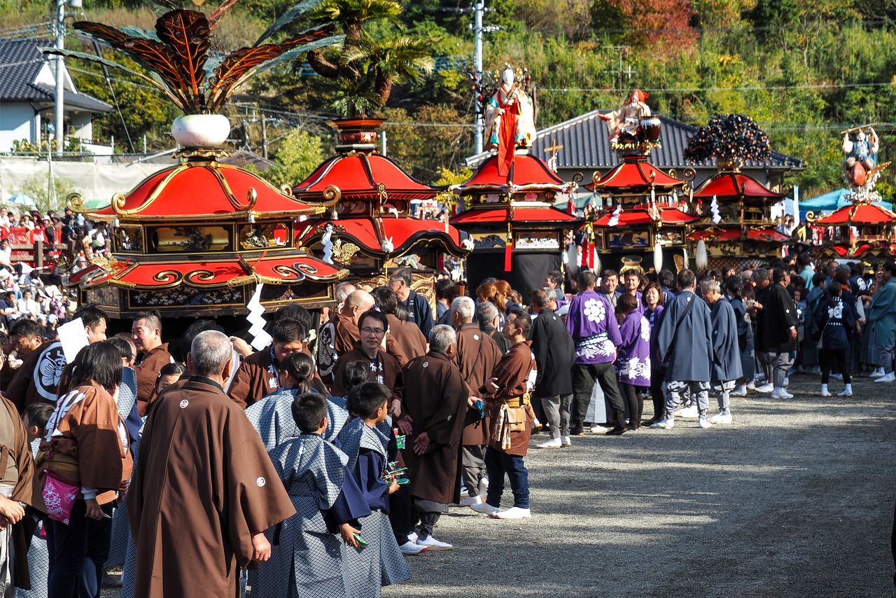 Шествие роскошно украшенных платформ касахоко на празднике, включённом в список Нематериального культурного наследия ЮНЕСКО