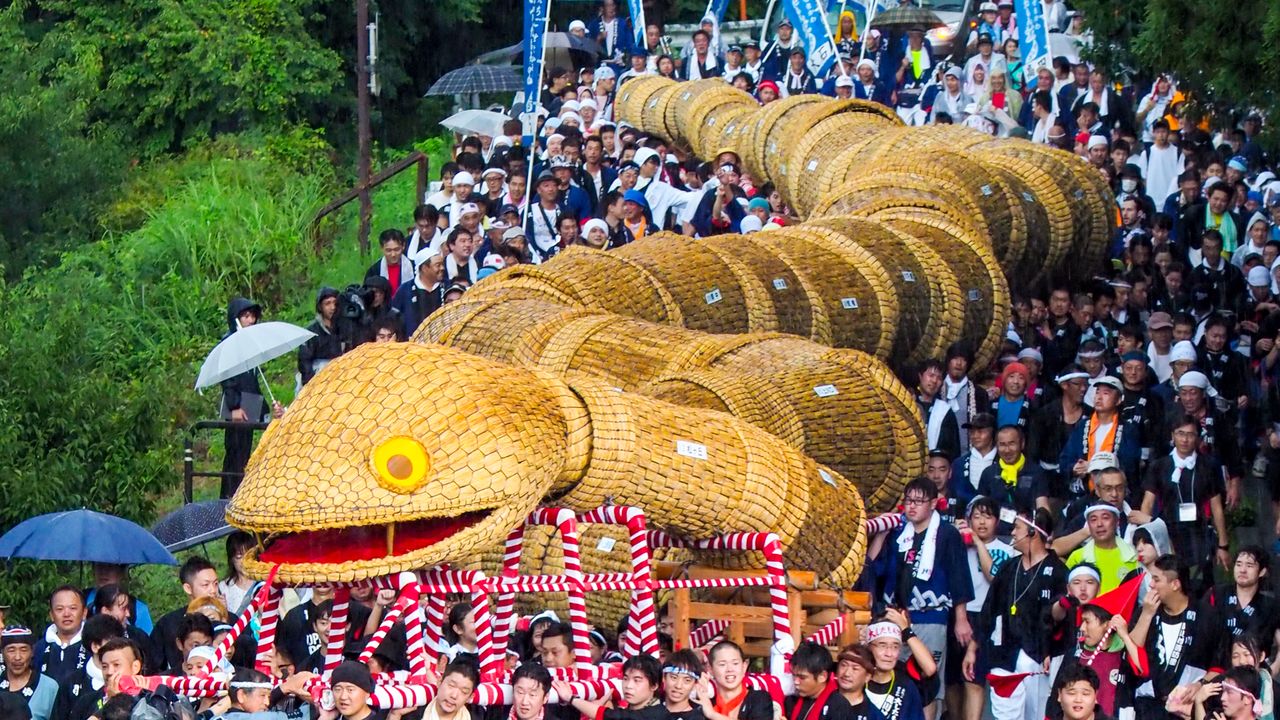 В Японии существует множество легенд о больших змеях, которым приписывали как хорошие, так и плохие качества – иногда это нападающие на людей монстры, а иногда – водные божества, приносящие нужные для земледелия дожди. Здесь я хотел бы представить основанные на местном фольклоре праздники, в ходе которых неистовствуют огромные змеи.