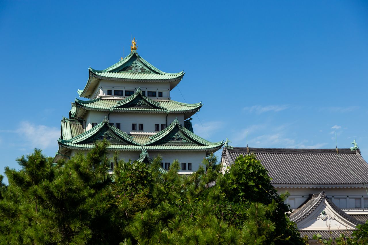 Замок Нагоя с его золотыми мифическими животными сятихоко на крыше широко известен. В городе Нагоя преф. Айти, который вырос как призамковый город, сейчас проживает около 2,3 млн человек, это крупнейший город региона Тюбу, расположенного в центральной части Японии. Любимый местными жителями замок, являющийся символом города, был завершён в 1612 году в качестве важнейшего для сёгунского правительства бакуфу фортификационного сооружения.