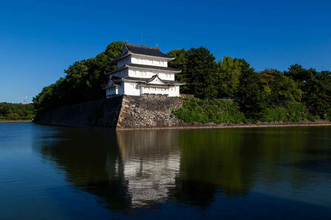 Юго-восточная угловая башня, также построенная в 1612 году. Слева видны ворота Ниномон с южной стороны площадки Хоммару