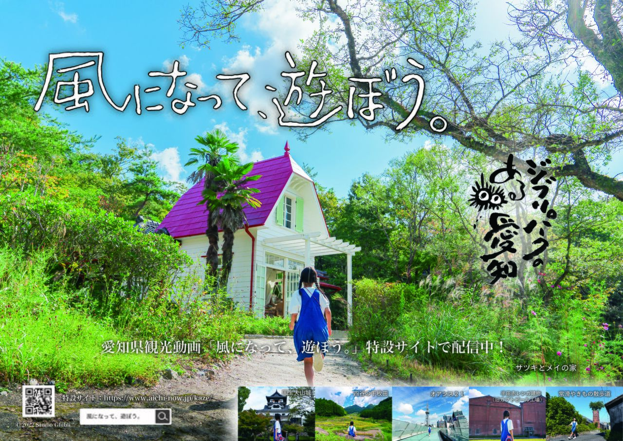 Префектура Айти обратилась к Studio Ghibli с просьбой создать видео для популяризации идеи парка «Гибли» в Айти, и студия сделала фильм «Стань ветром и играй». В нём показаны знаменитые места, такие как замок Инуяма, национальное достояние, а также улицы Аримацу, внесённые в список наследия Японии, и автомобильный музей «Тойота». Studio Ghibli сделала фильм с обзором туристических достопримечательностей впервые, но продюсер Судзуки без излишней скромности говорит, что он удался и они могут гордиться фильмом. Видео можно посмотреть в специальном разделе официального туристического сайта Айти «Айти сейчас».