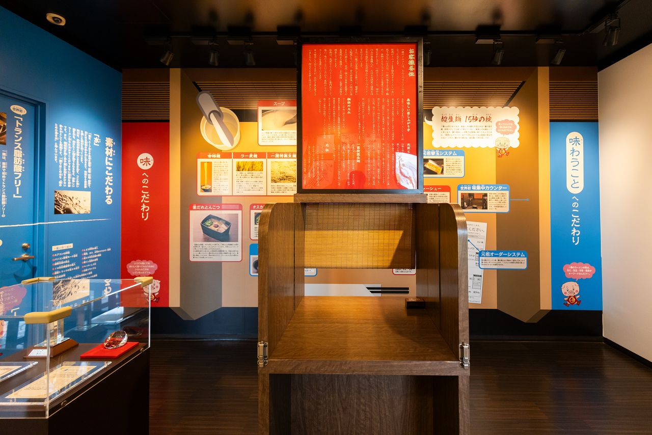Следующая остановка – музей рамэна тонкоцу. Конечно, в нем рассказывается об истории оригинального стиля Фукуоки, но экспозиция в целом отражает уникальное внимание «Итиран» к деталям, от процесса приготовления до сервиса и разработки новых продуктов.