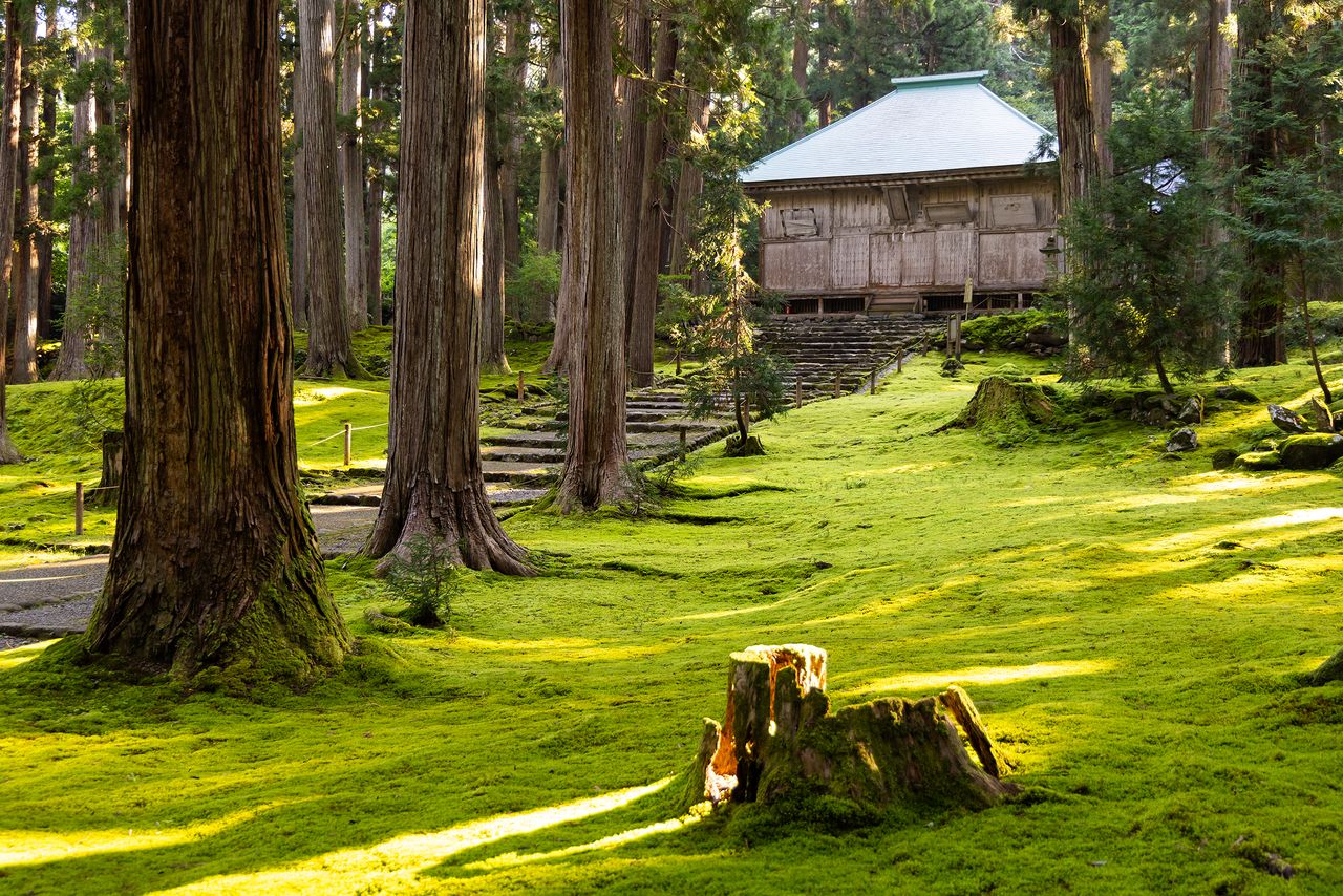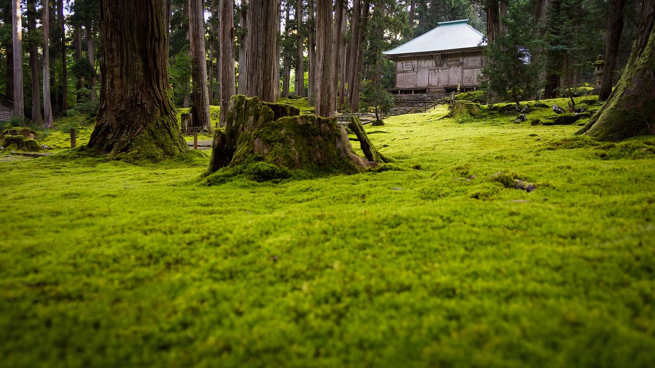Фотография к заголовку: Поросшая мхом территория храма Хэйсэндзи Хакусан (© Nippon.com)