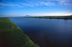 Комментарии фотографа: Ветер, дующий сквозь плавни и скользящий по воде поёт на все лады. Немного пугающий ландшафт в низовьях реки, считавшийся одним из 100 лучших аудиоландшафтов благодаря природным звукам, стал одной из неоценимых потерь, которые мы понесли от цунами 11 марта 2011 года.