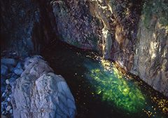 Комментарии фотографа: Река течёт глубоком ущелье, окружённом густыми лесами, и когда солнечный луч попадает на воду, где плывут опавшие листья, она приобретает удивительный изумрудно-зелёный цвет. Мистическое, завораживающее зрелище. Здесь с древних времён часто идут дожди. Хотя река часто пересыхает, вода продолжает бить из подземных источников.
