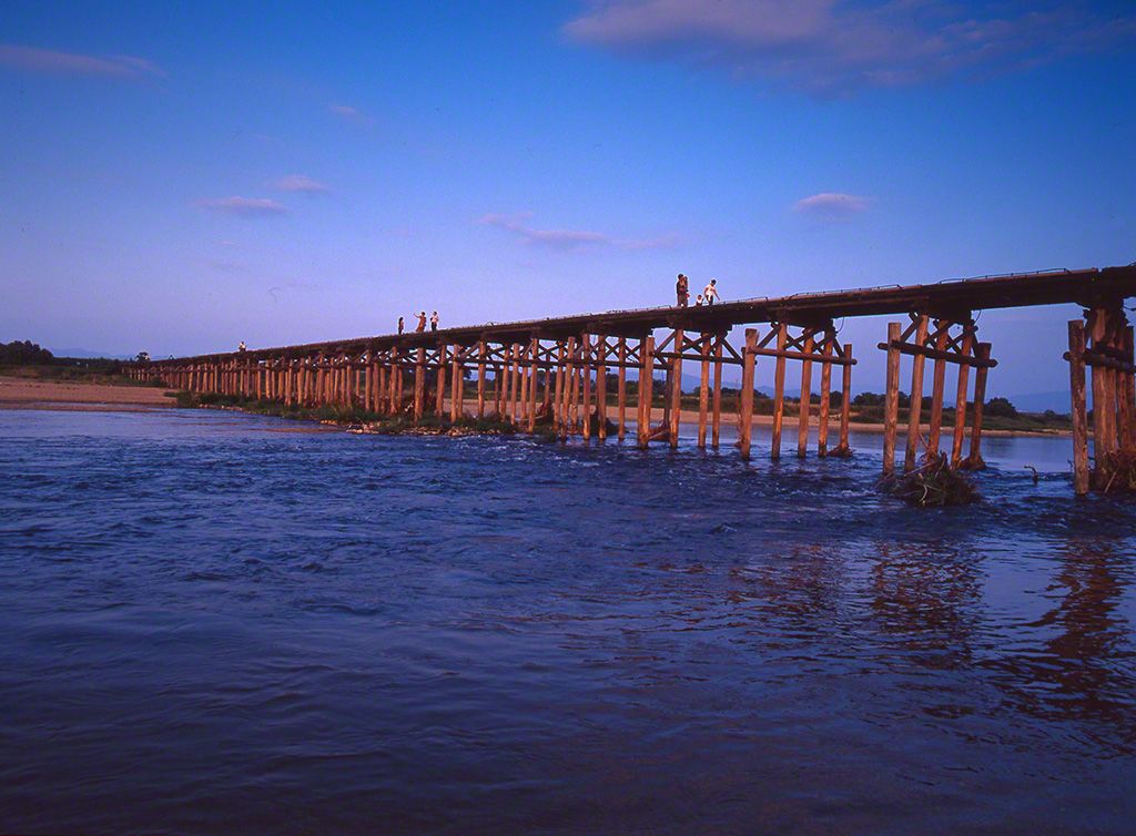 Комментарии фотографа: Киздугава течёт неподалёку от тех мест, где я вырос. Её название значит «Река брёвен», и напоминает нам об истории этого региона, о тех временах, когда здесь в VIII в. брали лес для строительства Дайбуцудэн, Павильона Большого Будды в храме Тодайдзи в городе Нара. Мост Кодзуябаси расположен в низовьях реки и является длиннейшим деревянным мостом в Японии. Он часто используется в качестве фона для телевизионных исторических сериалов. Когда я смотрю на людей, пересекающих реку по мосту, я ощущаю это некоей аллегорией человеческой жизни.