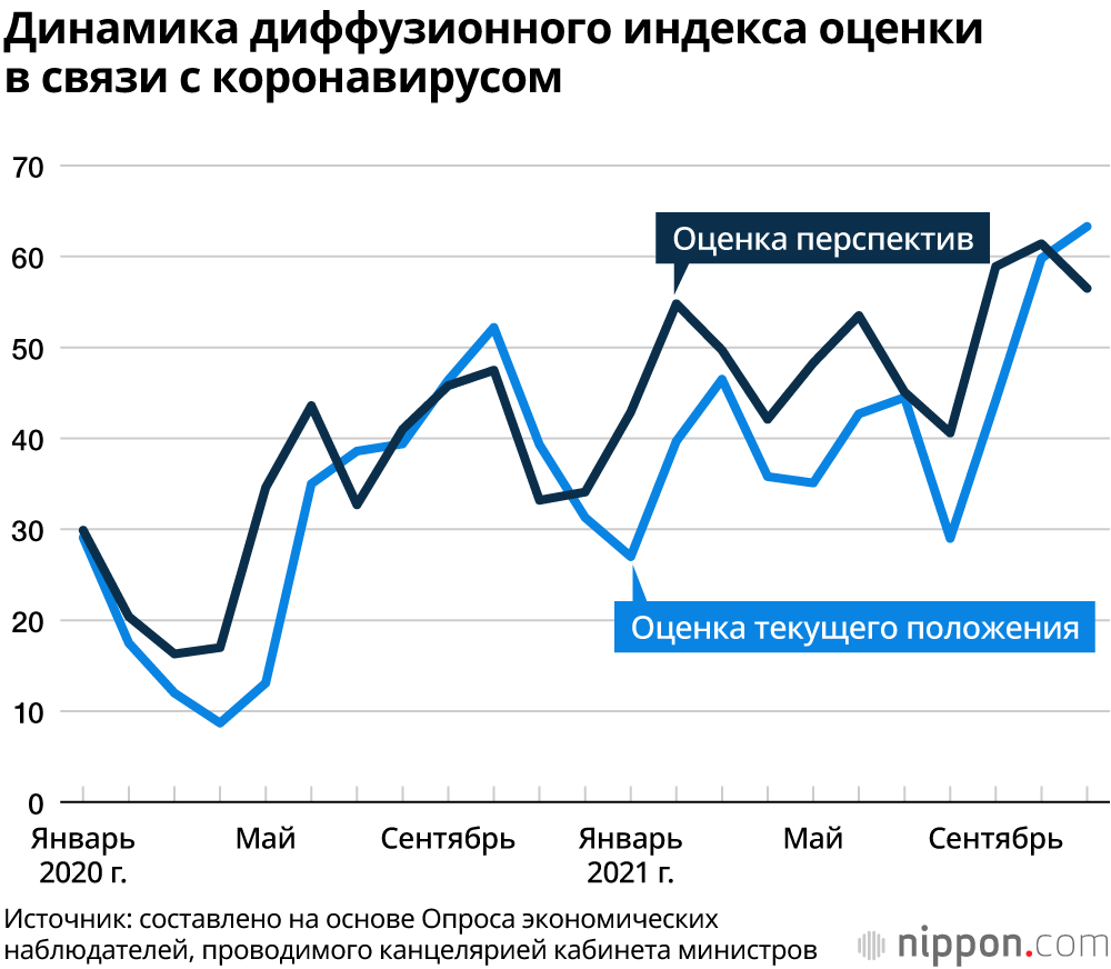 В проводимом канцелярией кабинета министров Опросе экономических наблюдателей – исследовании людей, чье положение заставляет их тонко улавливать экономическую ситуацию – слово «коронавирус» впервые появилось в январском опросе 2020 года. С тех пор распространение коронавирусной инфекции выступало сильным негативным фактором, влияющим на восприятие экономической конъюнктуры, однако в последее время ситуация выглядит так, будто оно стало работать в качестве позитивного фактора.