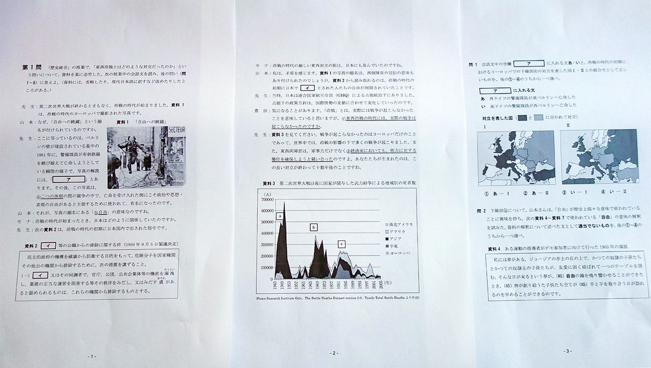 Образцы тестовых заданий по «Всеобщей истории», опубликованные на сайте государственного Центра вступительных экзаменов (фото редколлегии Nippon.com)
