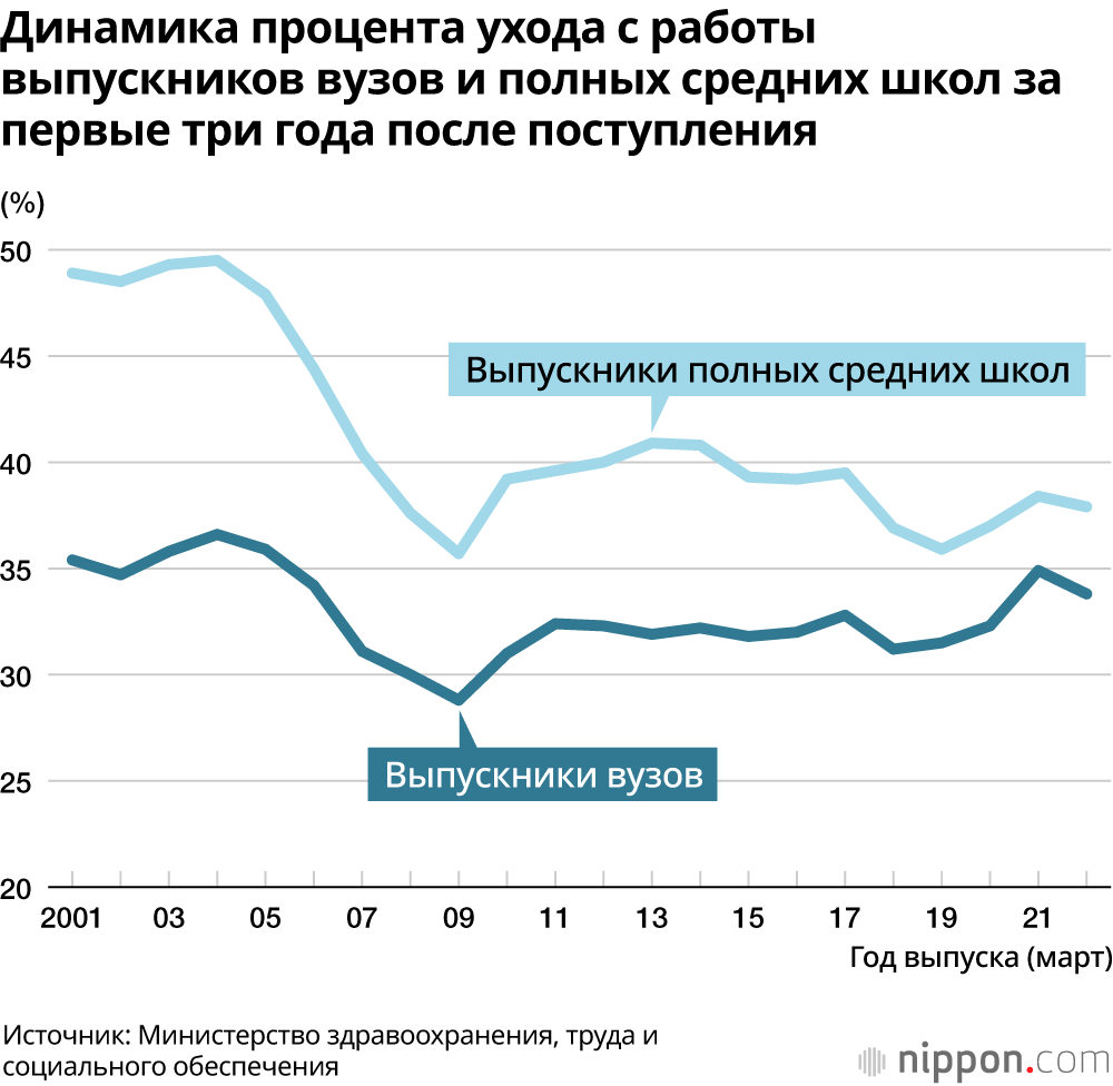 Когда с 2005 года экономическая конъюнктура стала изменяться к лучшему, наём свежих выпускников начал расширяться, и пусть в дальнейшем происходили такие неприятности как Лиман-шок (кризис, спровоцированный крахом инвестиционного банка Lehman Brothers) и пандемия коронавируса, после них продолжается период нехватки рабочих рук, и в настоящее время возможности трудовой карьеры у японской молодежи, пусть и несравнимые с временами экономики «мыльного пузыря», но все же время следует вновь считать скорее стабильными.