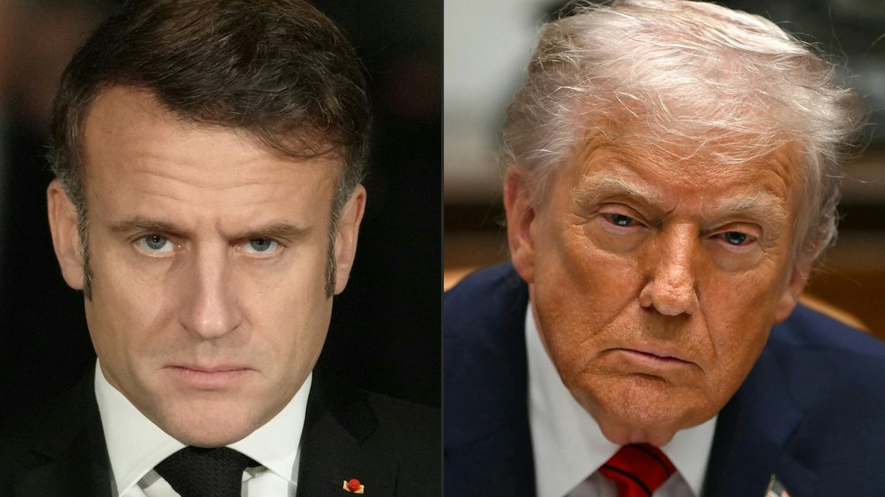 Фотография к заголовку: президент Франции Эммануэль Макрон (слева) и президент США Дональд Трамп (© AFP/Jiji Press)