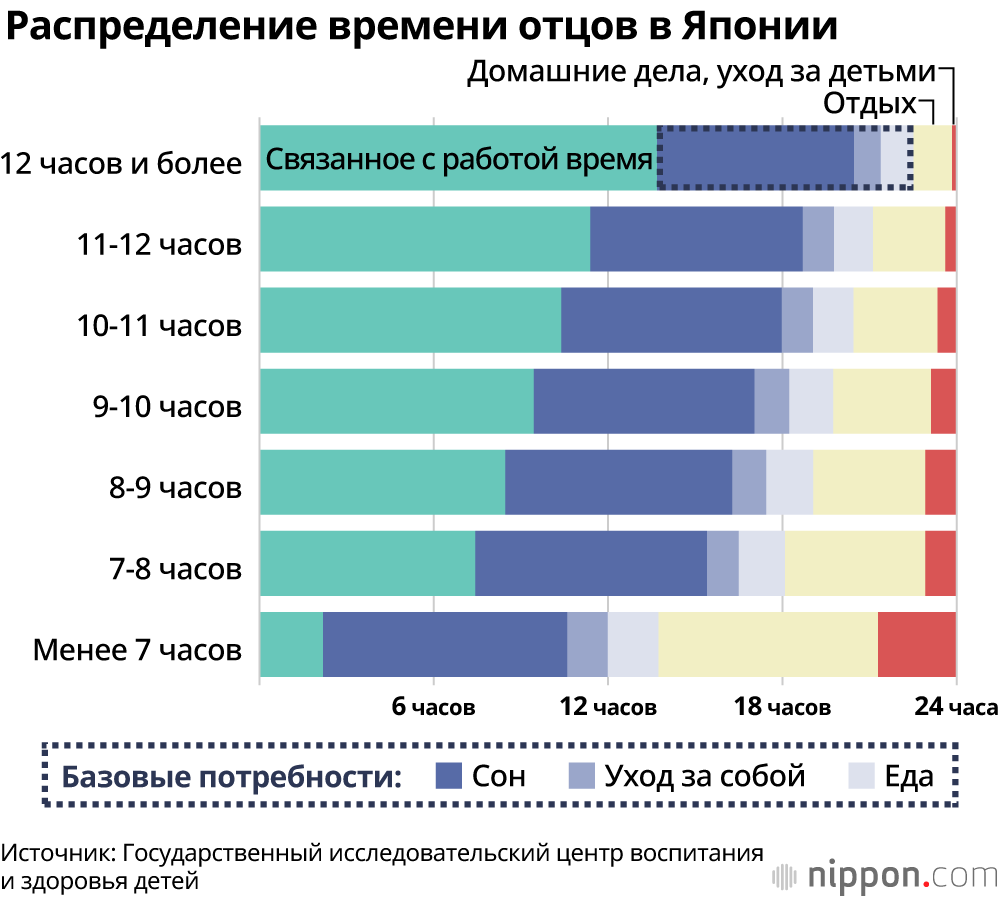 Государственный исследовательский центр воспитания и здоровья детей на основе данных 176 285 человек, случайным способом выбранных из «Базового обследования социальной жизни» Министерства внутренних дел и коммуникаций 2016 года, провёл анализ данных 3755 мужчин, состоящих в браке и имеющих ребёнка-дошкольника.