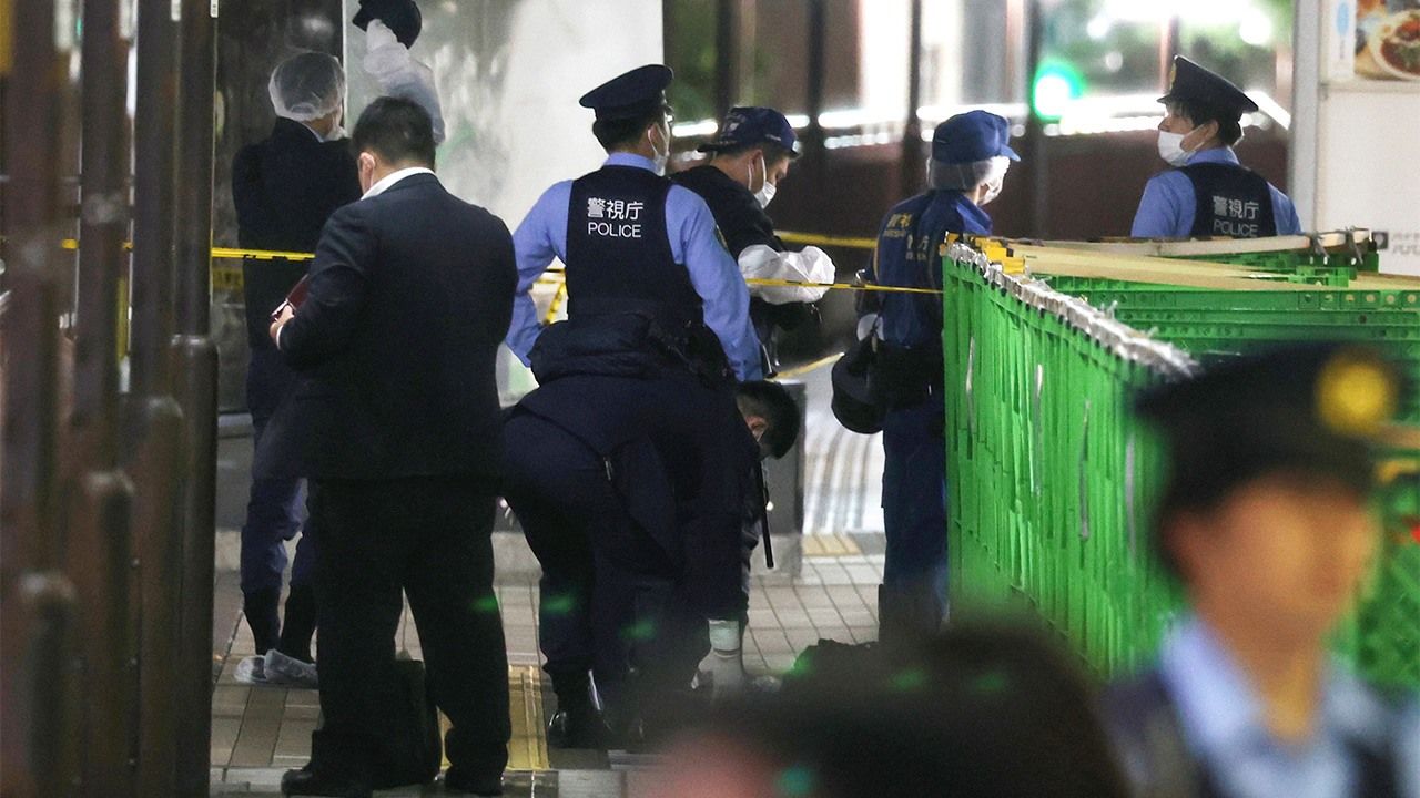 Фотография к заголовку: Полицейские столичного департамента полиции Токио осматривают место перестрелки возле станции JR Матида, 26 мая 2023 года, город Матида, Токио (Jiji Press)