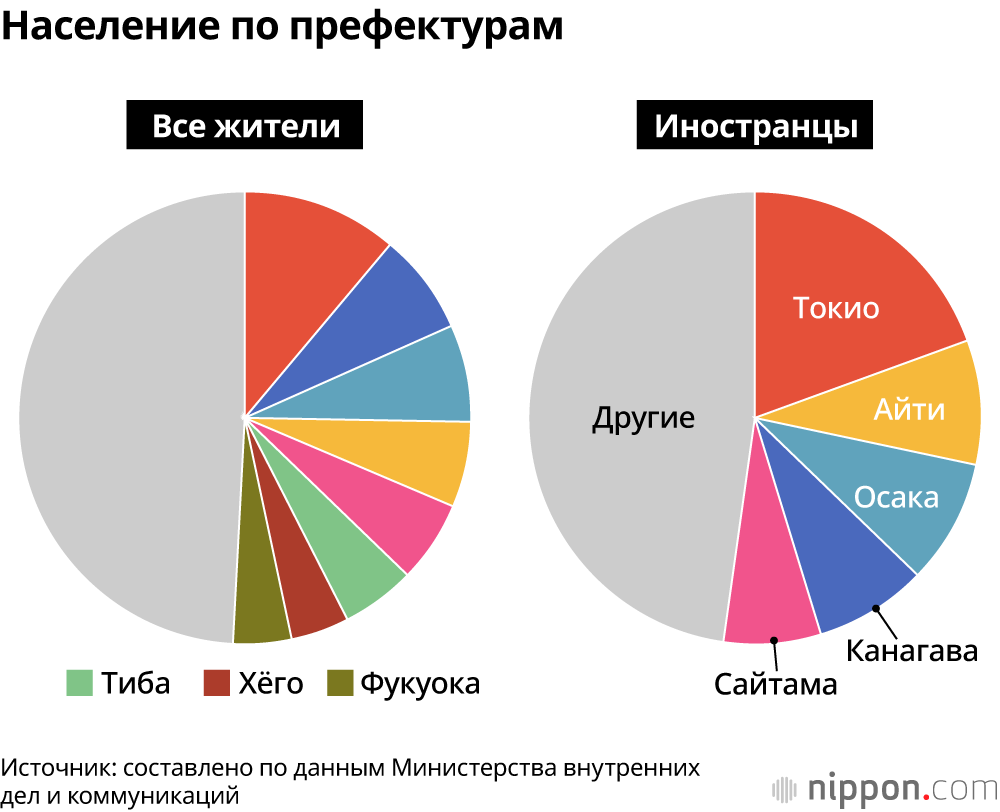 Префектуры с самым большим и самым маленьким количеством проживающих иностранцев