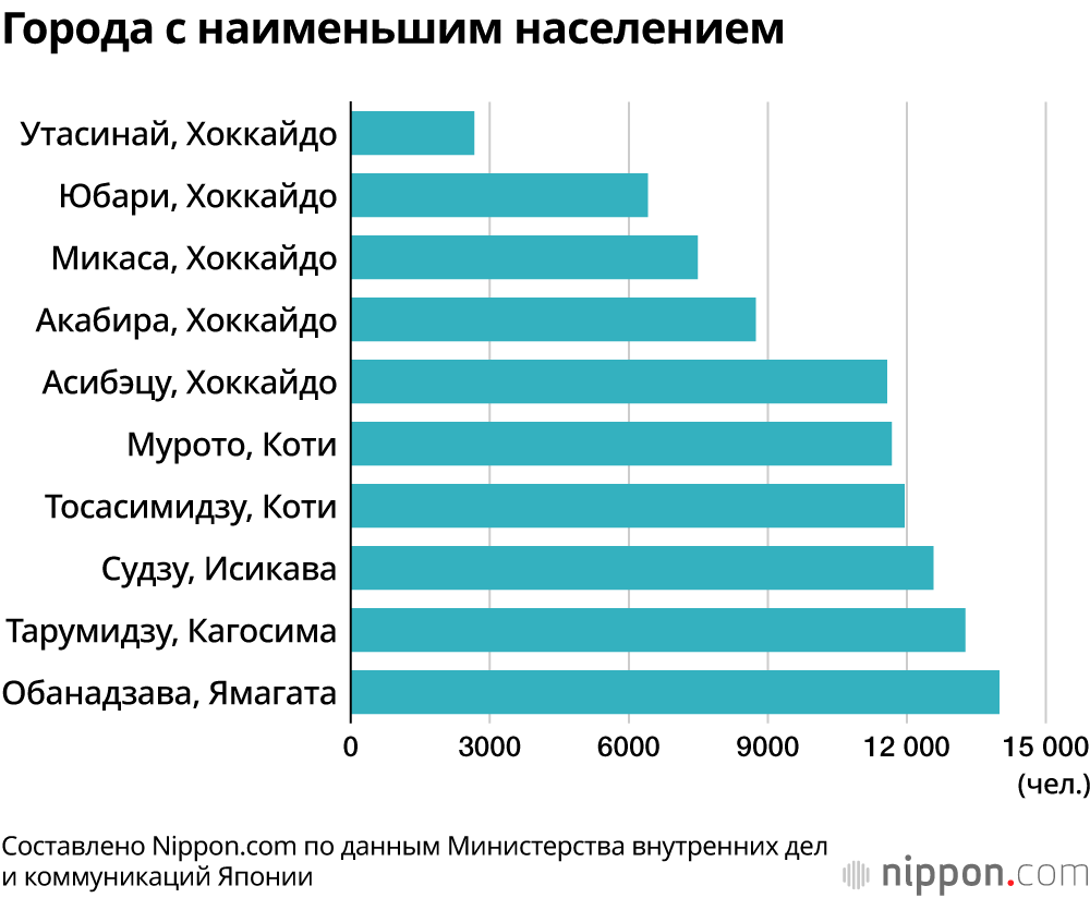 При этом в Японии есть 37 городов с населением менее 20 000 человек. Их число выросло по сравнению с 33 городами в 2023 году, так как в течение прошлого года население городов Симода в префектуре Сидзуока, Сусаки в префектуре Коти, Хакуи в префектуре Исикава и Фурано в префектуре Хоккайдо сократилось до этого уровня. Наименьшее население имел город Утасинай в префектуре Хоккайдо – всего 2668 человек, что в 1406 раз меньше, чем в Йокогаме. Пять городов с наименьшим населением расположены на Хоккайдо.