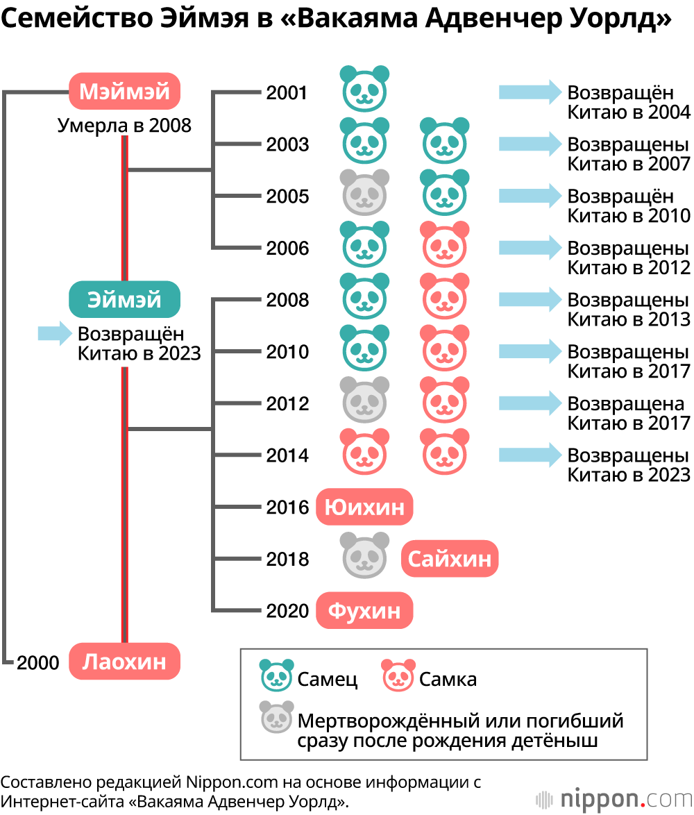 Тематический парк «Адвенчер Уорлд» в посёлке Сирахама префектуры Вакаяма известен на весь мир благодаря успешному опыту разведения панд. Самец Эймэй (1992) приехал сюда в двухлетнем возрасте. С 2001 года он стал успешно размножаться примерно раз в два года, и к 2020 году стал папой 16 детёнышей, 13 из которых уже уехали в Китай. В 2023 году вернулся в Китай и сам Эймэй.