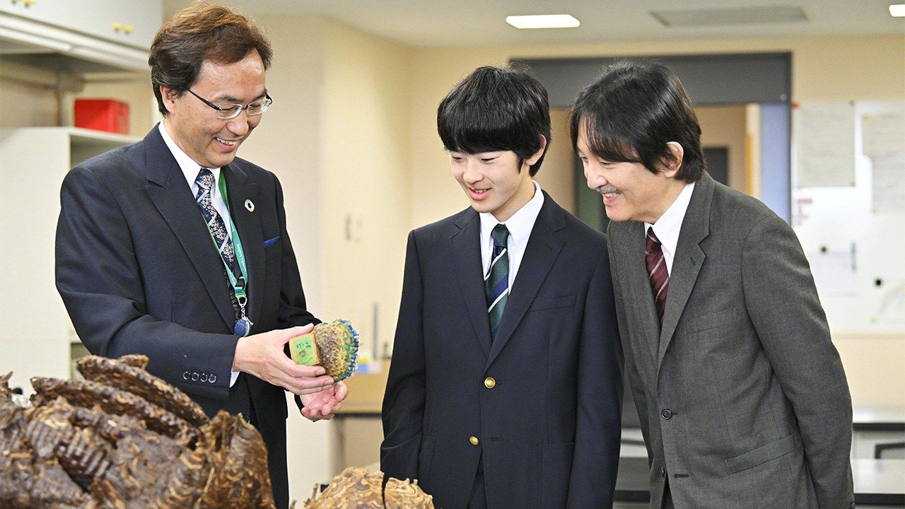 Фотография к заголовку: Принц Акисино и его старший сын Хисахито посетили Университет Тамагава и послушали рассказ о пчёлах в энтомологической лаборатории, 6 апреля 2024 года, Матида, Токио (Jiji Press)