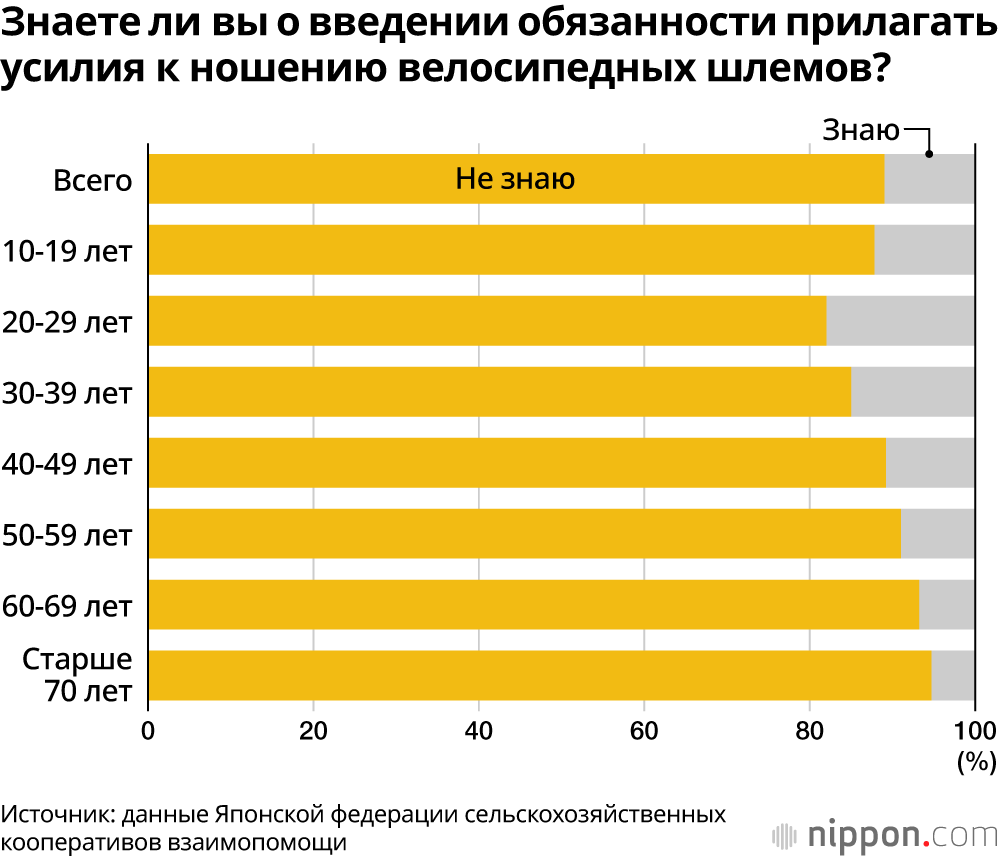 В Японии почти все знают об «обязанности прилагать усилия» к использованию велосипедных шлемов, но в действительности надевает лишь каждый четвёртый